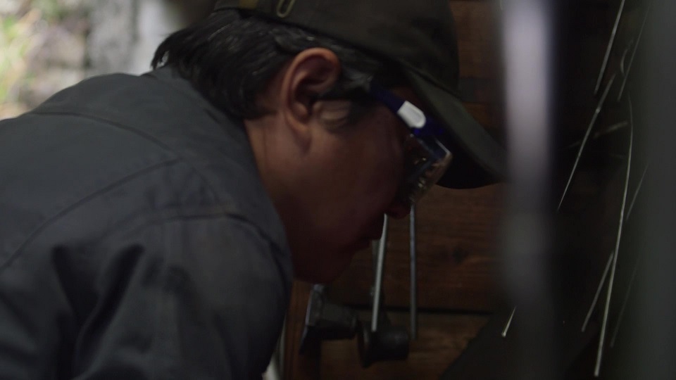 割込本鍛造安来鋼白紙二号入(刻印:炎) 鉄管鍔付輪黒 樫柄焼柿渋塗仕上